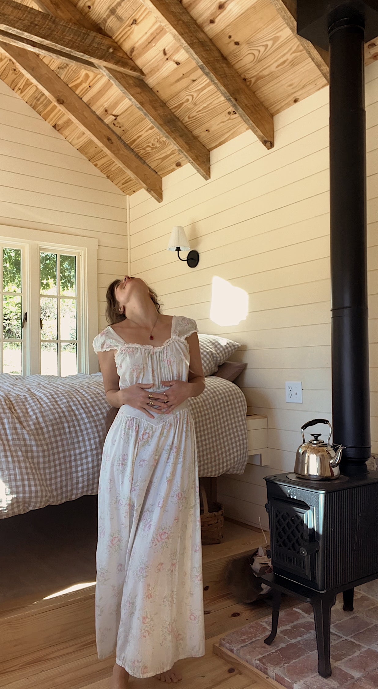 This is honestly one of the most unique pieces I’ve found. Made sometime between the 40’s and 60’s. The softest material and most stunning, delicate floral print. Not to mention the cut! Such an incredible fit.